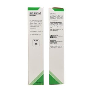In conjunction with internal systemic therapy using homoeopathic medications, ADEL 75 (INFLAMYAR) ointment treats rheumatic, arthritic and inflammatory conditions topically to greatly ease pain and bring quick relief to afflicted patients – all without the side-effects of chemical drugs. Other conditions effectively treated by ADEL 75 (INFLAMYAR) ointment include myalgia, contusion, haematoma, torticollis, tendovaginitis, myogelosis, meniscopathia, neuralgia, lumbago, hip pain (sciatica), bursitis and intercostal neuralgia.